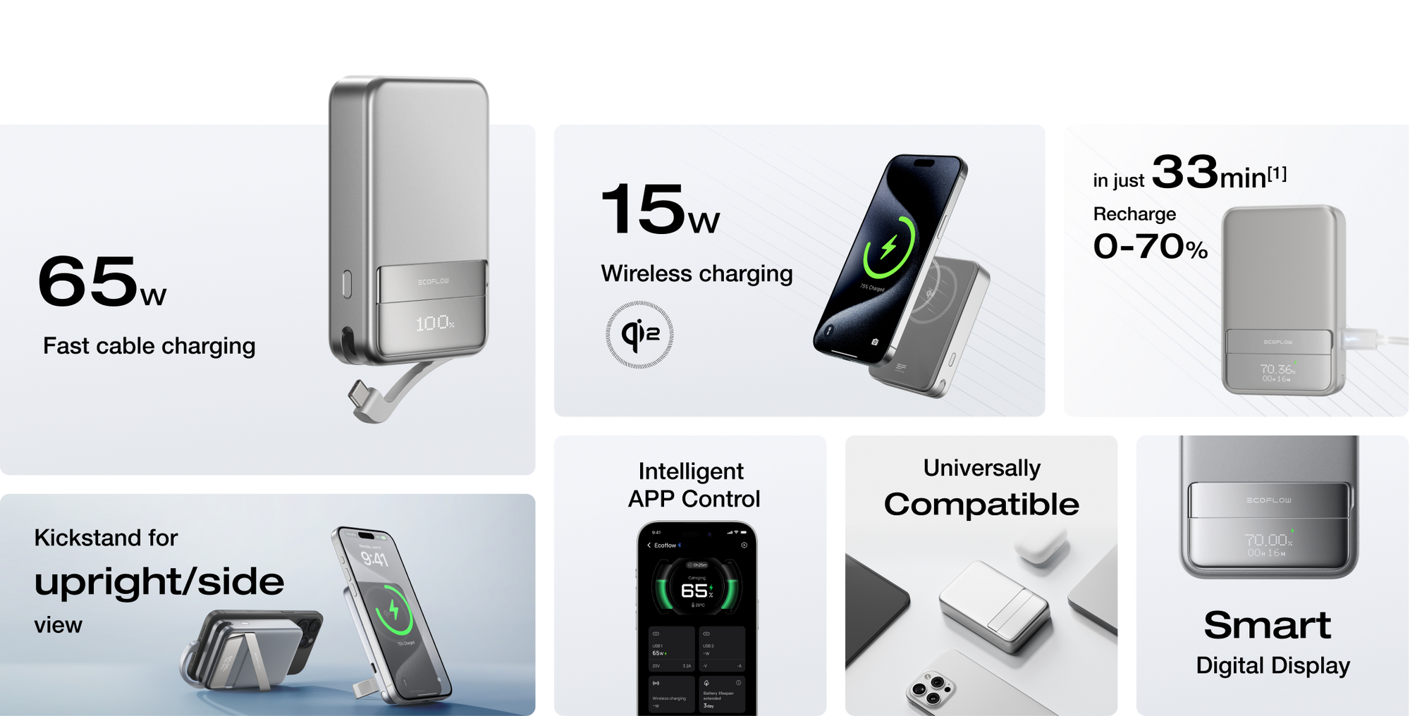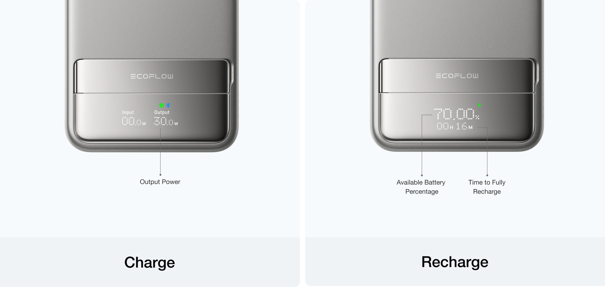 • Flash Recharging: With 30W input, charge from 0% to 70% in under 33 minutes while you get ready to head out.