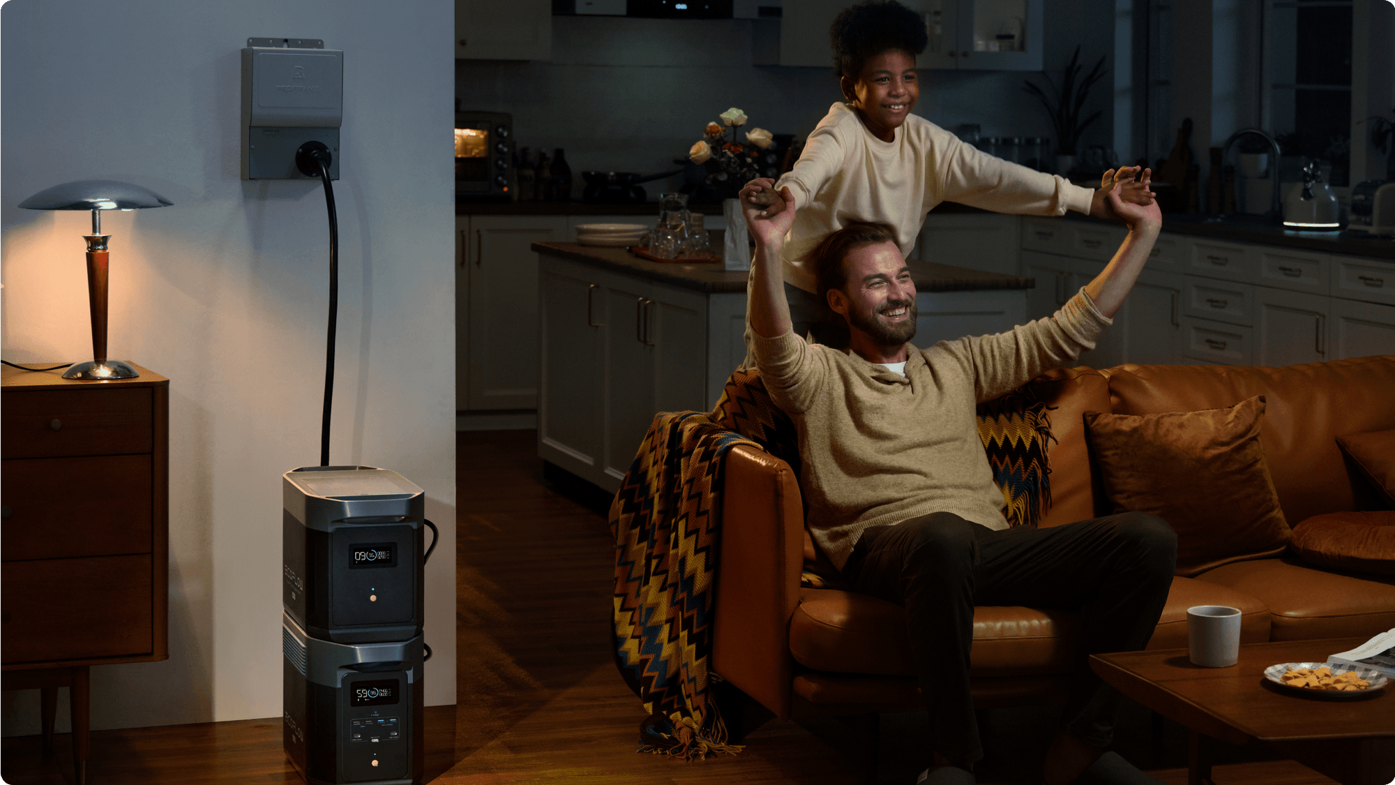 Power your essential appliances with a hefty 2400W AC output by connecting DELTA 2 Max (2kWh) and up to two Smart Extra Batteries (6kWh) with your home's transfer switch for partial home backup. With a plug-and-play design, it's easier than ever to prepare for blackouts.