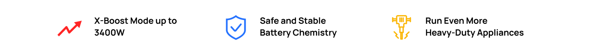 DELTA Max powers almost all the devices you need with a large 2400W AC output. With X-Boost proprietary technology, run appliances with an output of up to 3400W. Compared with similar portable power stations, DELTA 2 Max can power more devices while also preventing overloading and overheating.