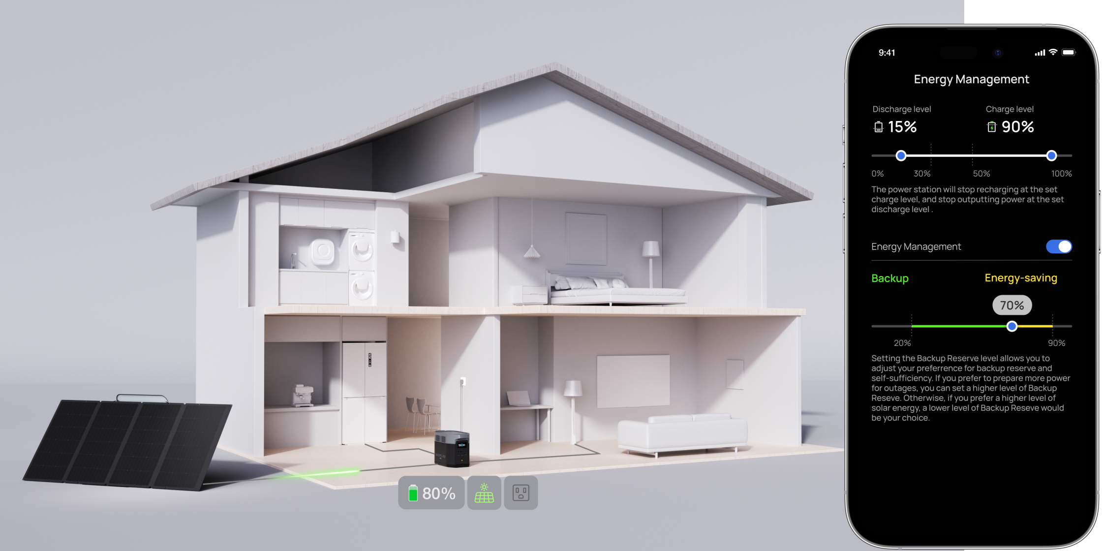 Take DELTA 2 Max with you anywhere as a solo unit or connect it with two Extra Batteries for up to 6kWh of home backup.