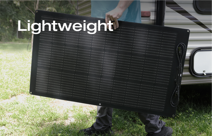 Weighing only 5.1 lbs and a compact size of 41.5in x 24in x 1in, this 100W flexible solar panel can be mounted on RV roofs, tents, or even awnings to collect and store solar energy.