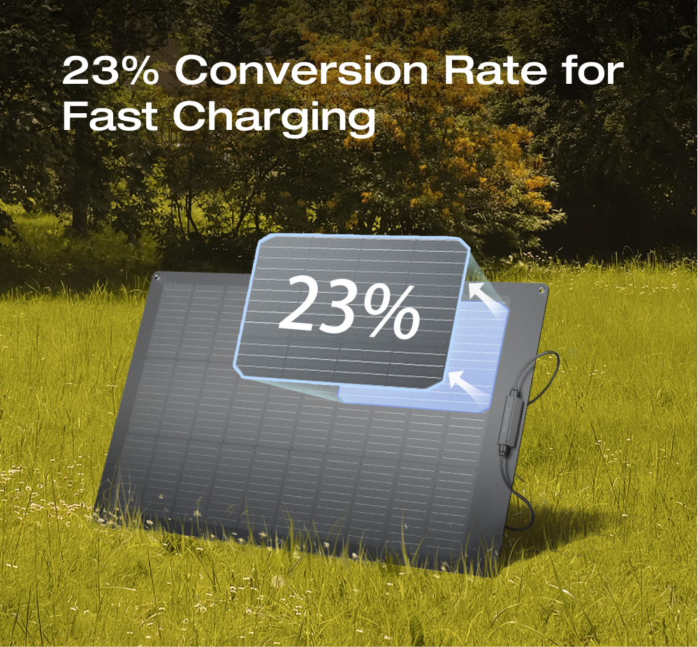 Flexible solar panels are versatile, lightweight, and easy to move and mount. Compared to similar panels, EcoFlow’s flexible solar panel has the same 23% solar conversion rating as the rigid alternative.
