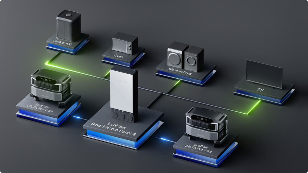 EcoFlow Smart Home Panel 2 is the hub of the powerful EcoFlow DELTA Pro Ultra that allows you to get the full potential out of your energy system. Connect your home circuits with up to 3 plug-and-play inverters and 15 stackable 6kWh batteries, it not only takes care of your backup for even longer but allows you to control and run every single household appliance.EcoFlow Smart Home Panel 2 is not only future-proofed to work with our next-gen power solutions, but it works with EcoFlow DELTA Pro, too.