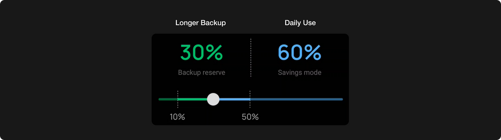 With Backup Reserve mode, EcoFlow Smart Home Panel 2 secures an assigned battery percentage. Fear an impending outage? Set a higher reserve for home backup. For everyday use, set a lower portion and customize your EcoFlow Smart Home Panel 2's performance using Self-Power, Scheduled Tasks, or TOU Modes to lower your energy bills.