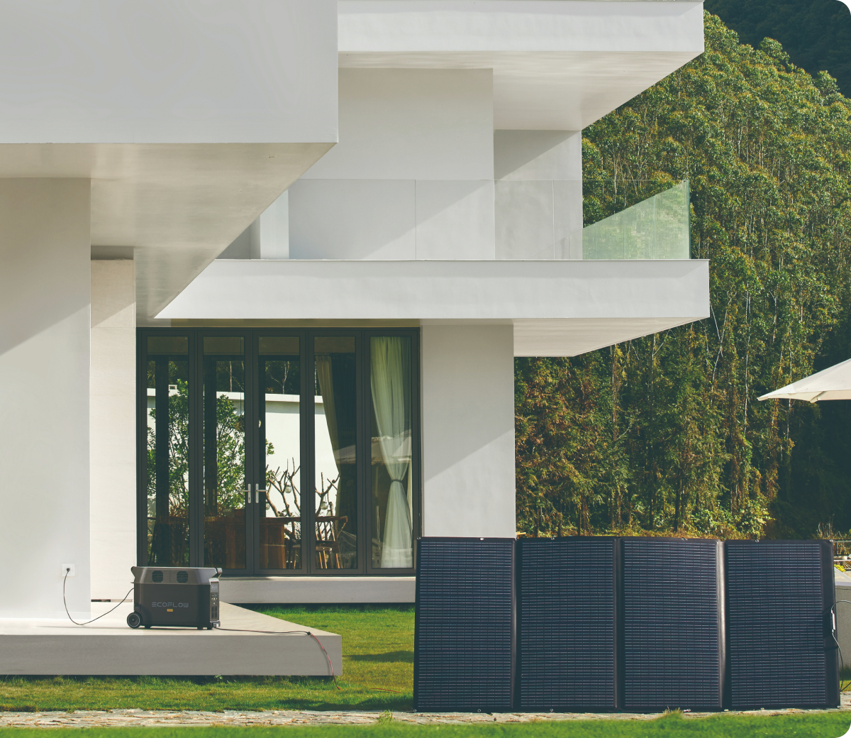 Yes, you can power your whole house using a DELTA Pro portable power station and solar panels. Which configuration is right for you depends on your household electricity consumption and how many appliances you want to run simultaneously during a blackout. If your HVAC systems require electricity, you’ll probably want to invest in the Advanced Kit and additional storage capacity with DELTA Pro Smart Extra Batteries.