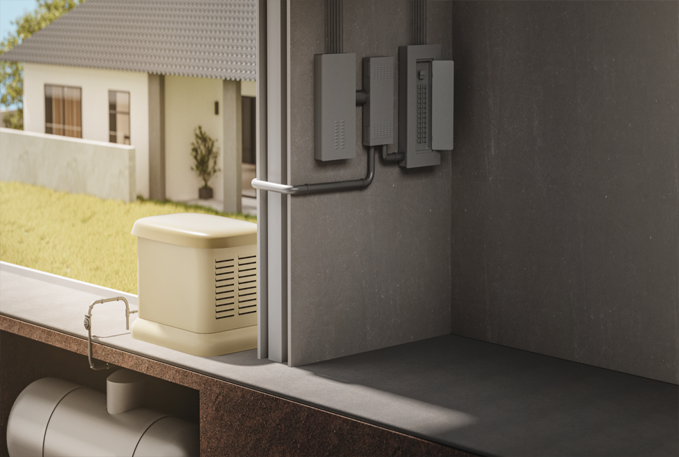 The generator is the heart of the backup power system and converts fuel (propane or natural gas) into electricity. When the main power supply is interrupted, the generator automatically produces electricity to power the connected circuits.