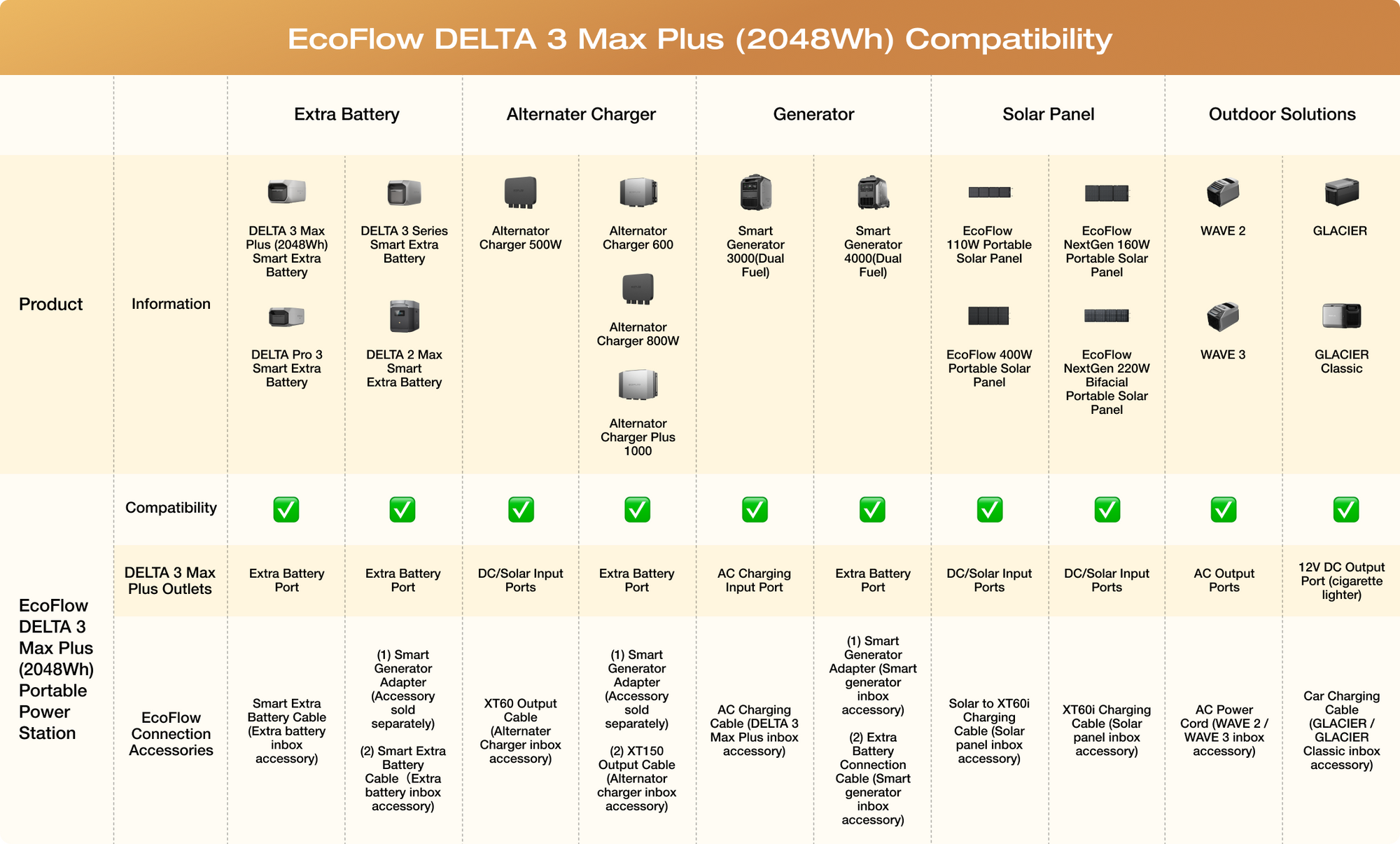 Pair DELTA 3 Max Plus (2048Wh) with EcoFlow Smart Generators to achievelonger runtime—automatically switching between fuel and battery to keep you powered through multi-day outages or off-grid adventures. [15]