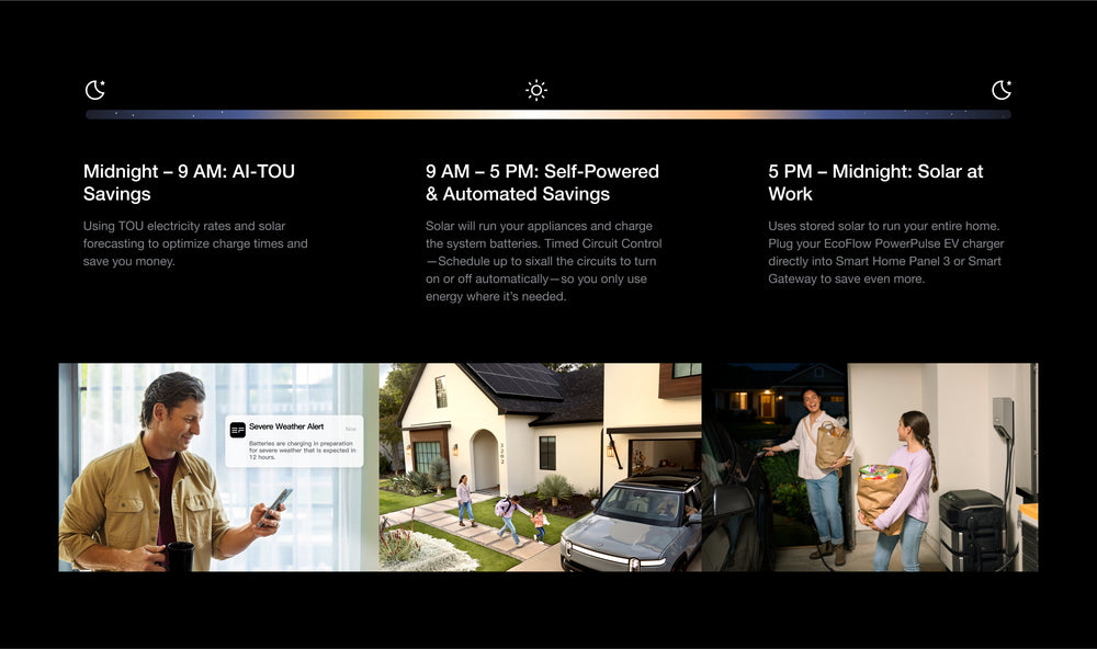 Day and night, power shifts between solar, storage, and off-peak rates—maximizing every watt to get you the best deal. Here's what that might look like on a typical day of use.