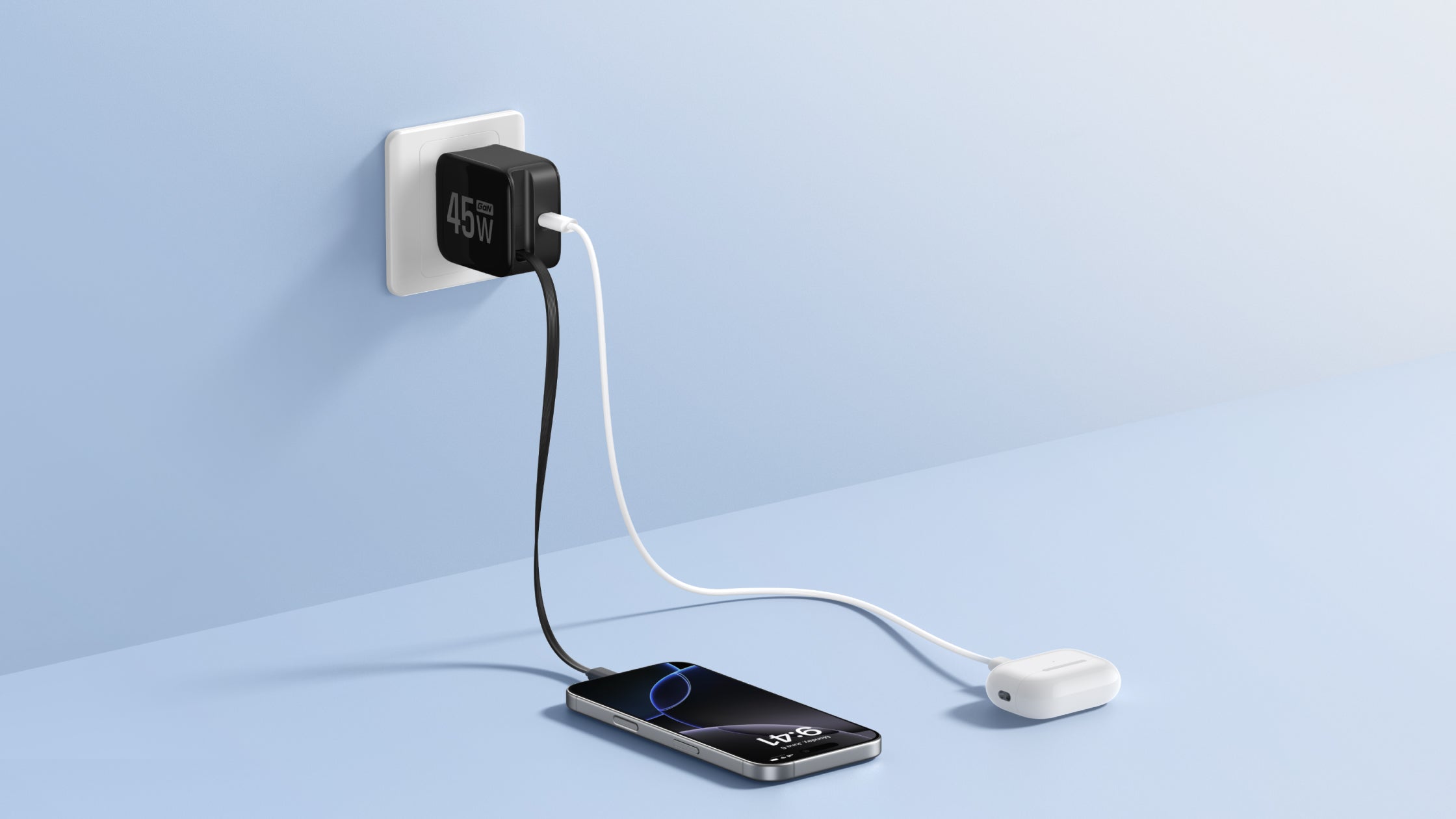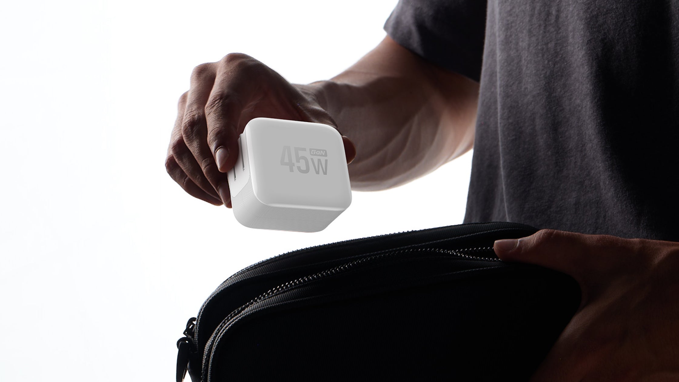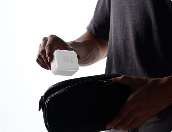 Boasting a volume smaller than an Apple 45W Adapter,this charger's compact design ensures it seamlessly fits into your setup without encroaching on space or interfering with other devices.
