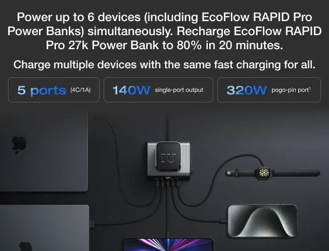 Specs - EcoFlow RAPID Pro Desktop Charger (320W, 5 Ports, GaN)