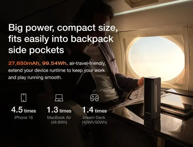 Yes, according to regulations by the International Civil Aviation Organization (ICAO) and most airlines, carrying a power bank with a capacity under 100Wh is allowed. The RAPID Pro, with a capacity of 27650mAh (99.54Wh), meets this requirement and can be carried on board without concern.