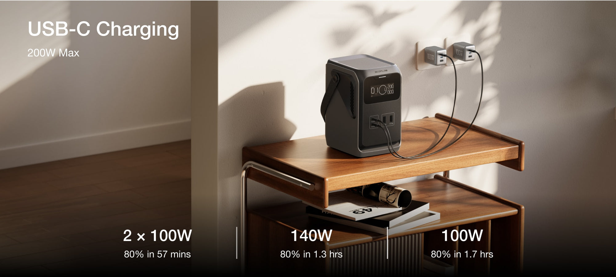 Recharge via 140W PD USB-C port and enjoy outdoor energy anytime, anywhere with TRAIL.