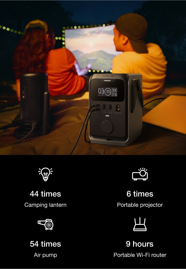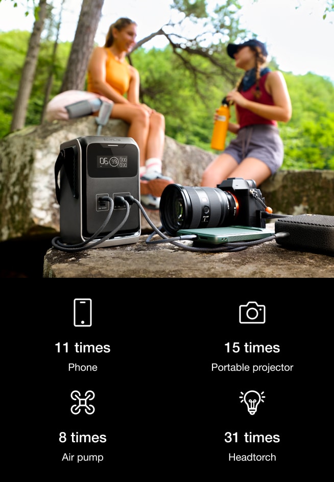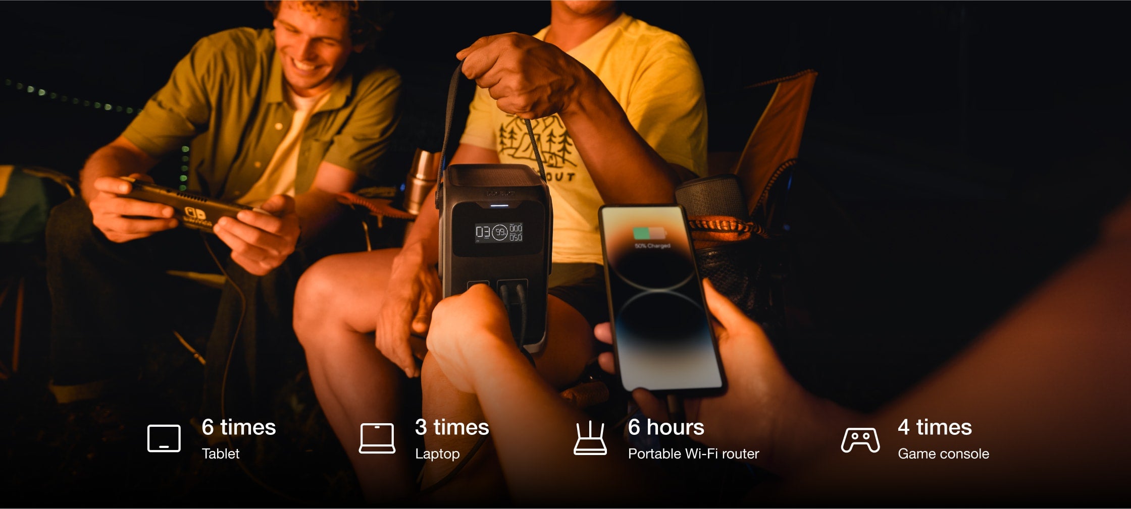 With 192Wh (60,000mAh) capacity—equivalent to 6 power banks in one—TRAIL 200 DC effortlessly powers all your friends’ devices.